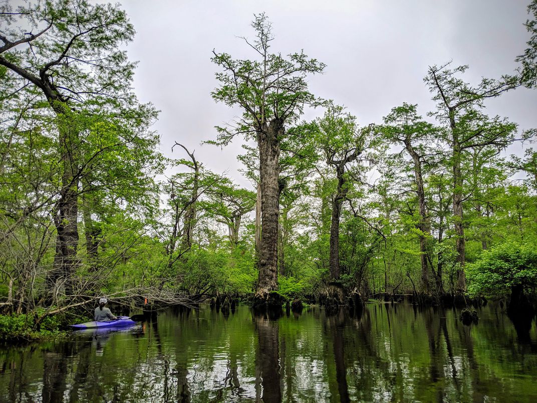 "There is no other place on Earth like this," Angie Carl says. Her voice carries across the swamp of North Carolina's Black River as we sit floating in kayaks at the knees of our elders, an ancient stand of bald cypress trees.
